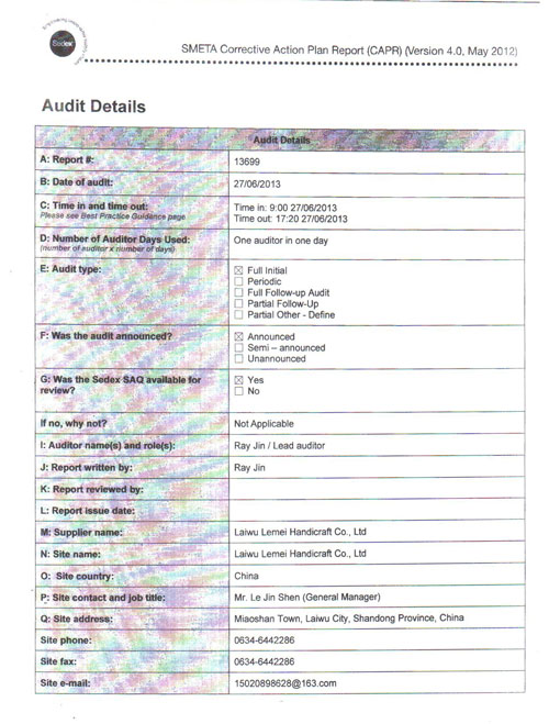 ©2014-2015 Copyright: 萊蕪樂美工藝品有限公司 地址:山東省濟(jì)南萊蕪區(qū)苗山鎮(zhèn) 電話:0531 - 76442286 Email:lwtmgyslj@163.com 魯ICP備18011534號-1